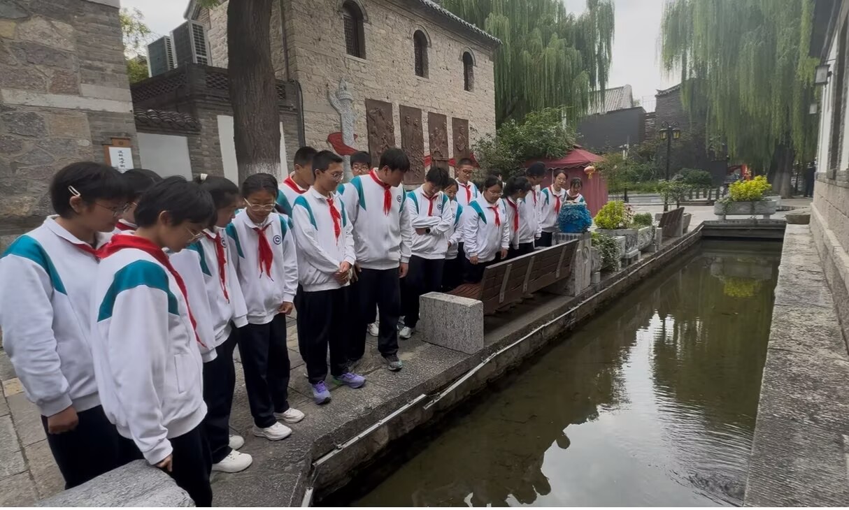 “原来课本里写的‘家家泉水、户户垂杨’,真的藏在这样的老巷里!”站在济南百花洲的青石板路上,山东省济南第三十四中学初二年级少先队员苗静瑶望着墙根下潺潺流淌的泉水,又转头看向不远处坐在自家门口晒太阳的老奶奶,兴奋地跟同伴分享心头的惊喜。10月20日,该校初一、初二年级少先队员代表循着泉城文脉,开启“寻访泉水人家,传承泉城文脉”主题队日活动,在老济南的烟火气里,读懂家乡的文化密码。