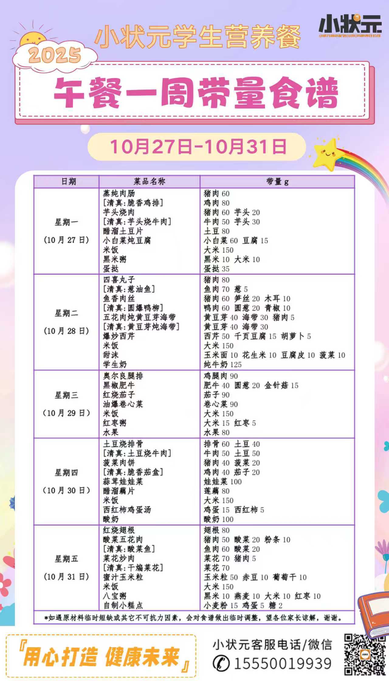 山东省济南第三十四中学2025-2026学年第一学期第九周配餐公示