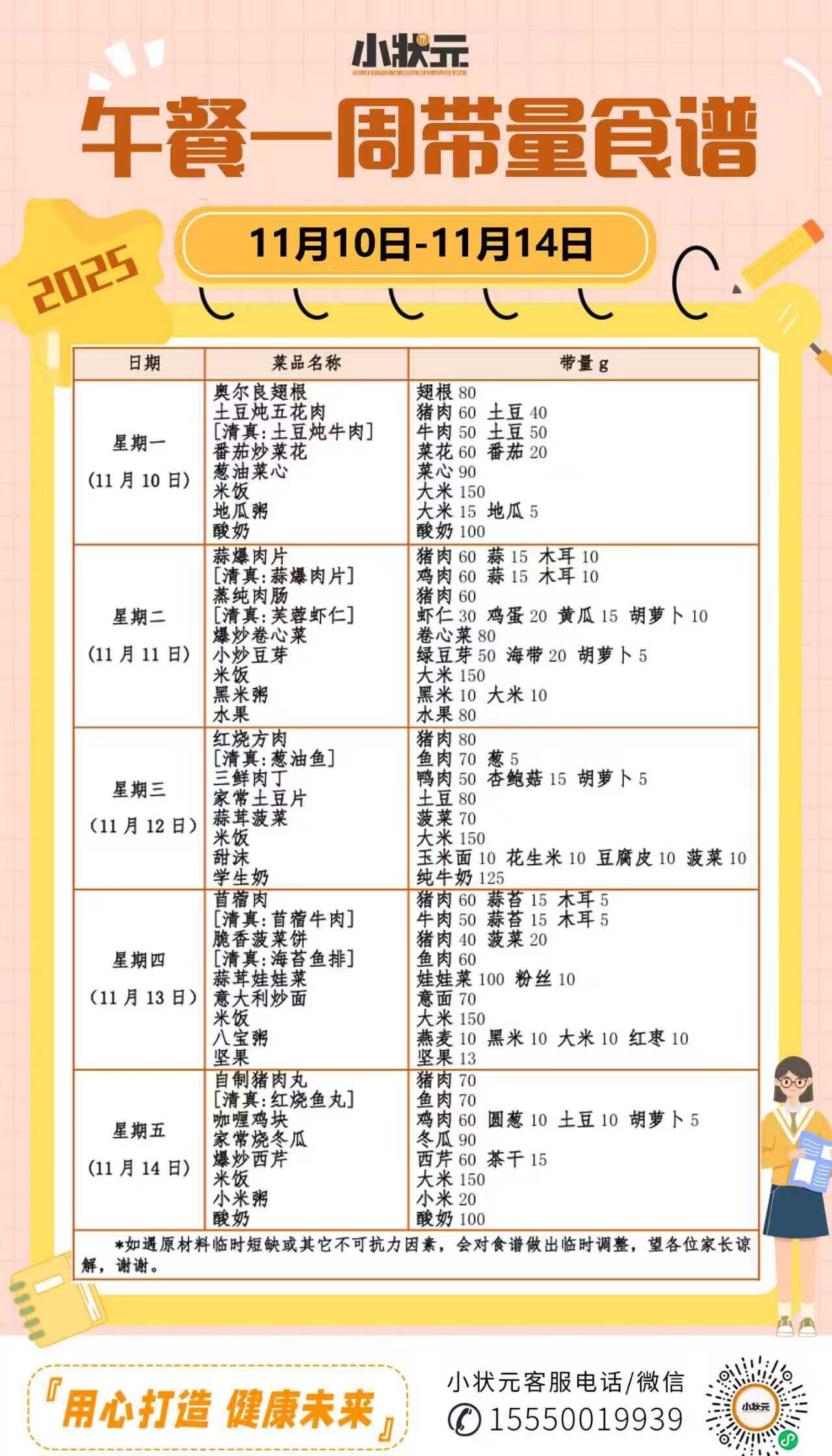 山东省济南第三十四中学2025-2026学年第一学期第十一周配餐公示
