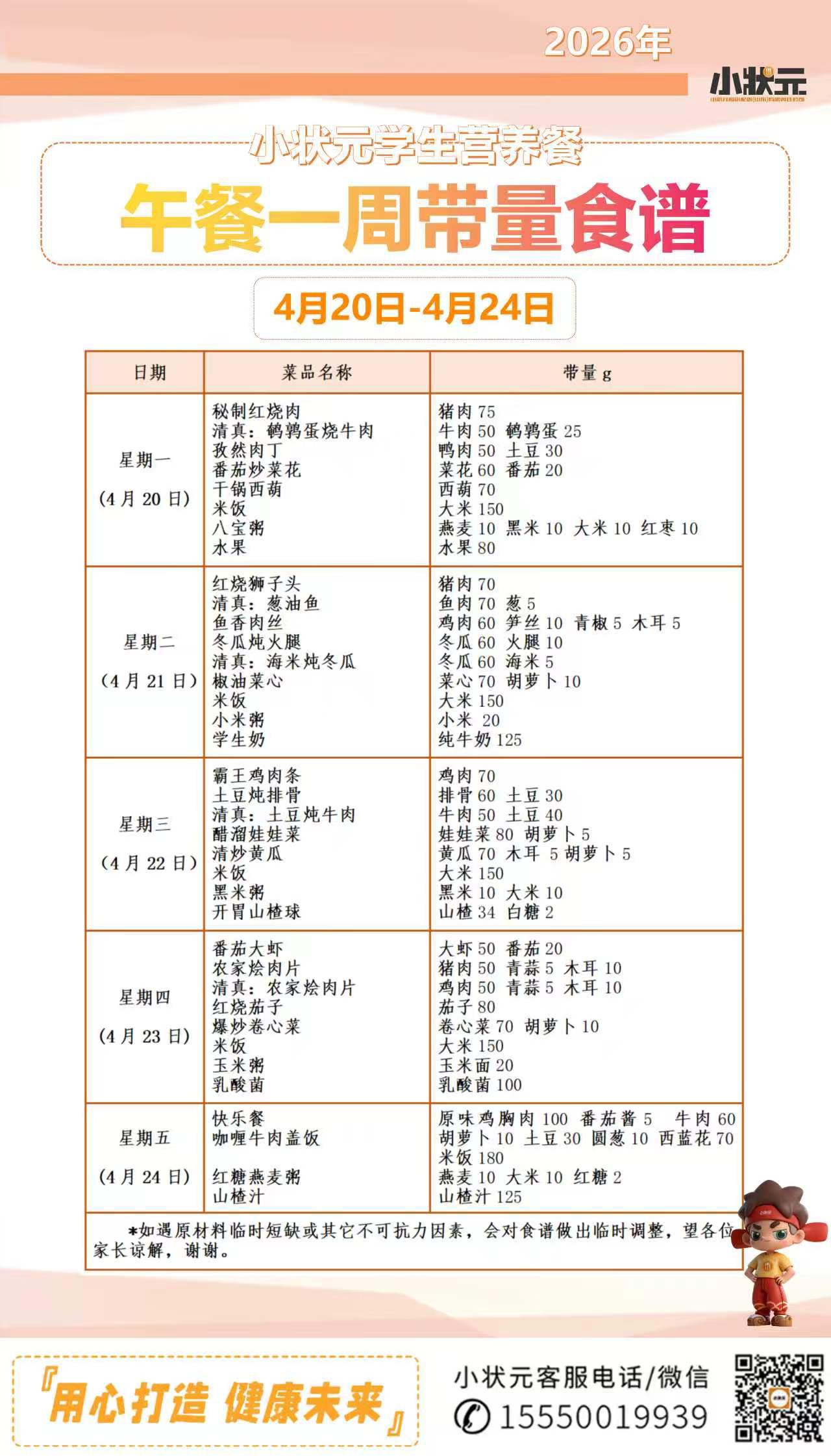 山东省济南第三十四中学2025-2026学年第二学期第八周配餐公示