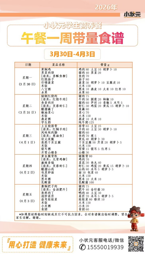 山东省济南第三十四中学2025-2026学年第二学期第五周配餐公示