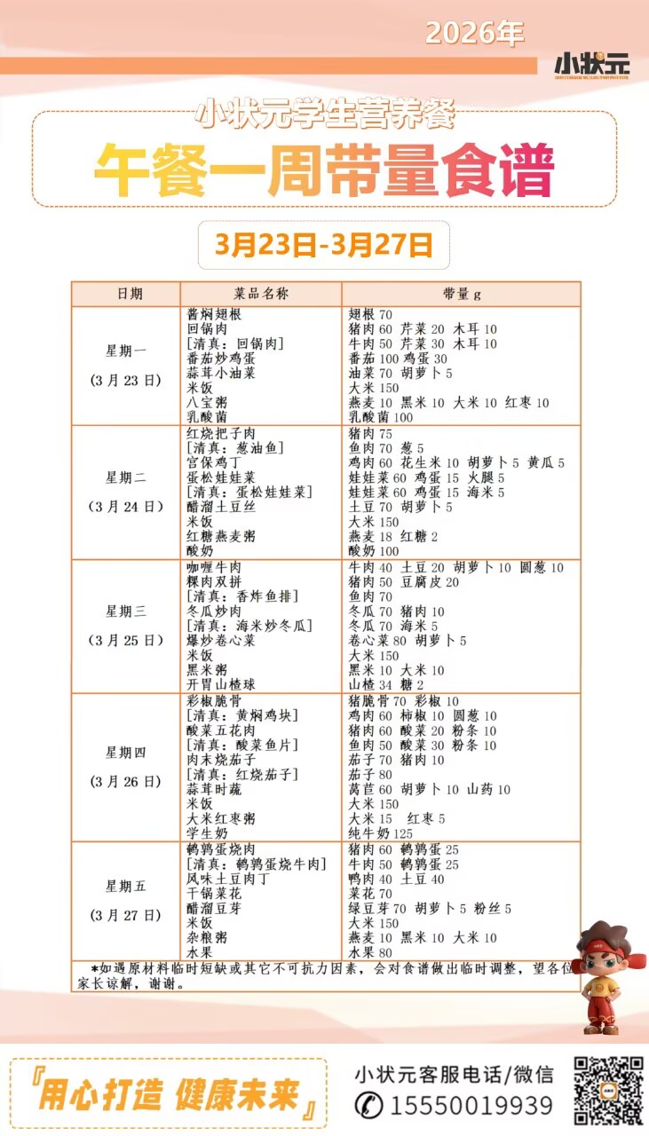 山东省济南第三十四中学2025-2026学年第二学期第四周配餐公示