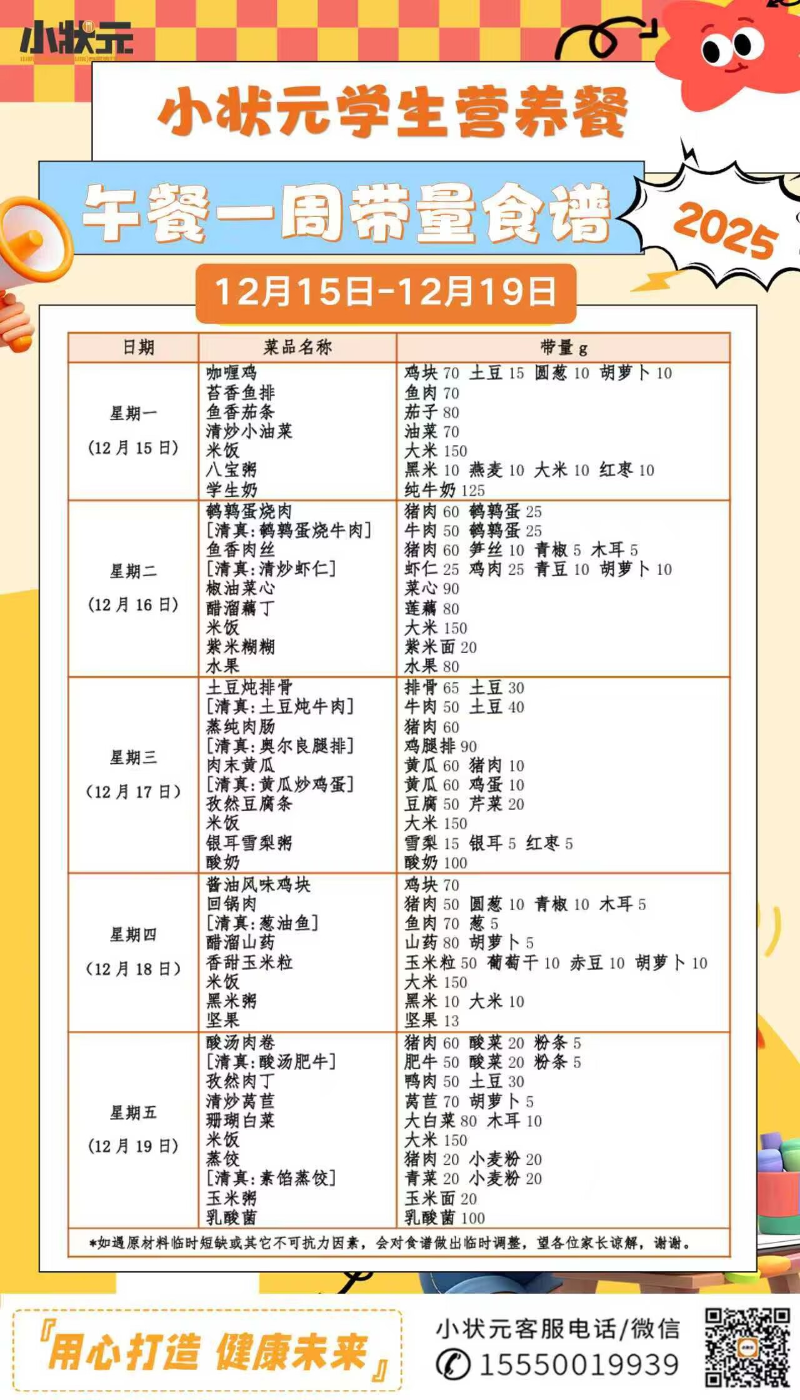 山东省济南第三十四中学2025-2026学年第一学期第十六周配餐公示