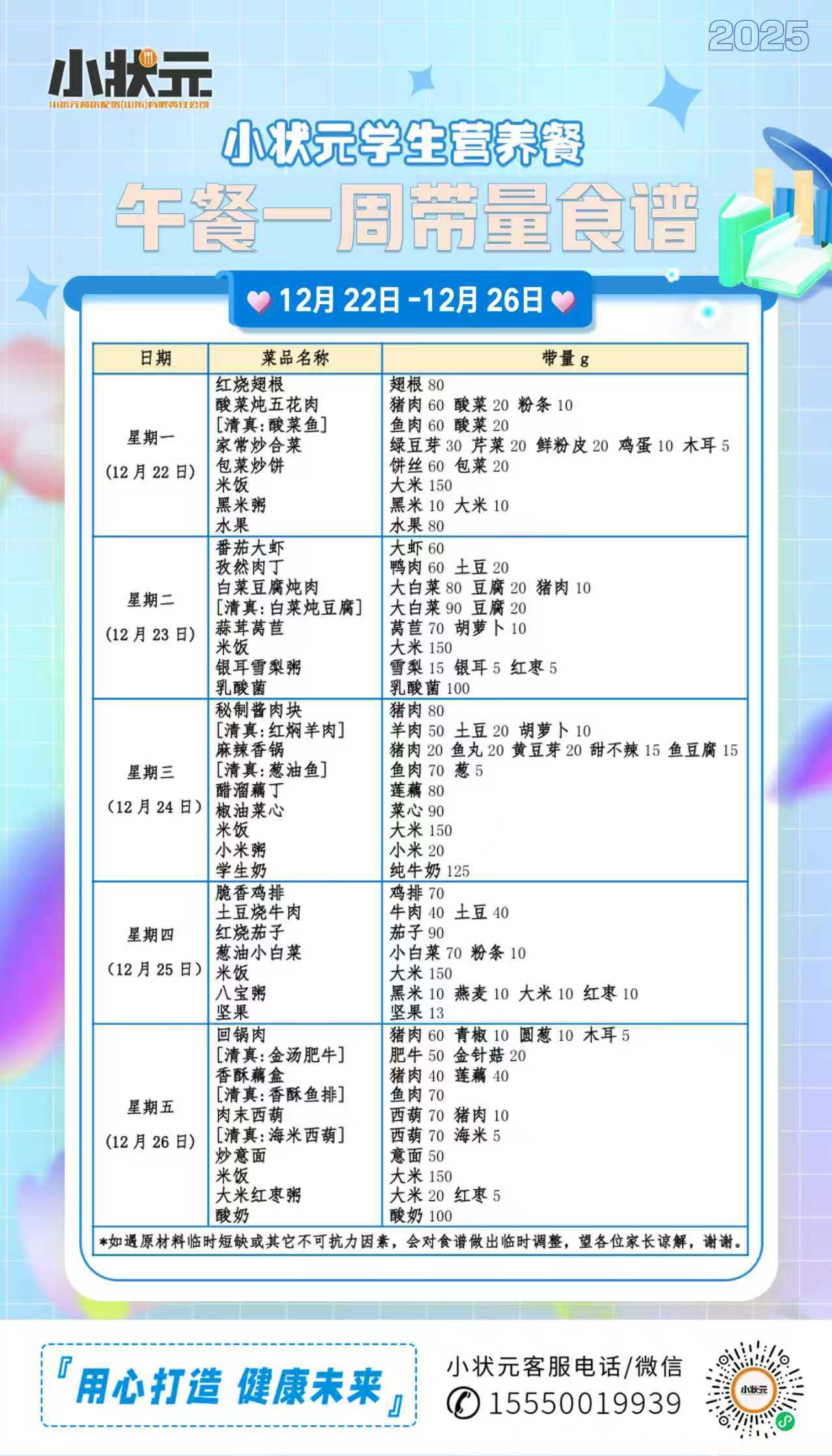 山东省济南第三十四中学2025-2026学年第一学期第十七周配餐公示