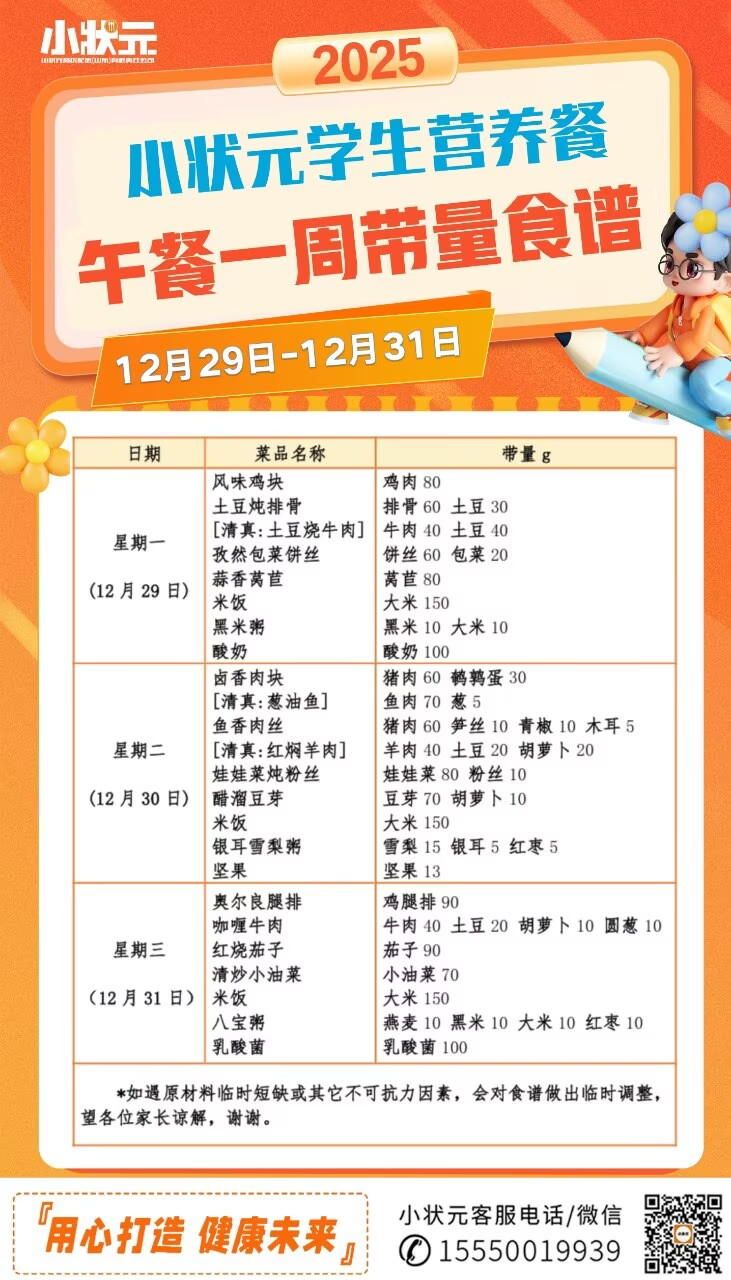 山东省济南第三十四中学2025-2026学年第一学期第十八周配餐公示