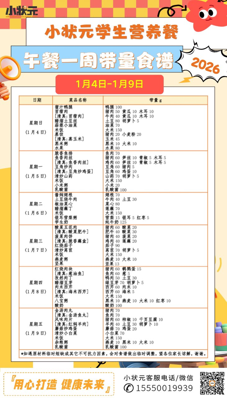 山东省济南第三十四中学2025-2026学年第一学期第十九周配餐公示