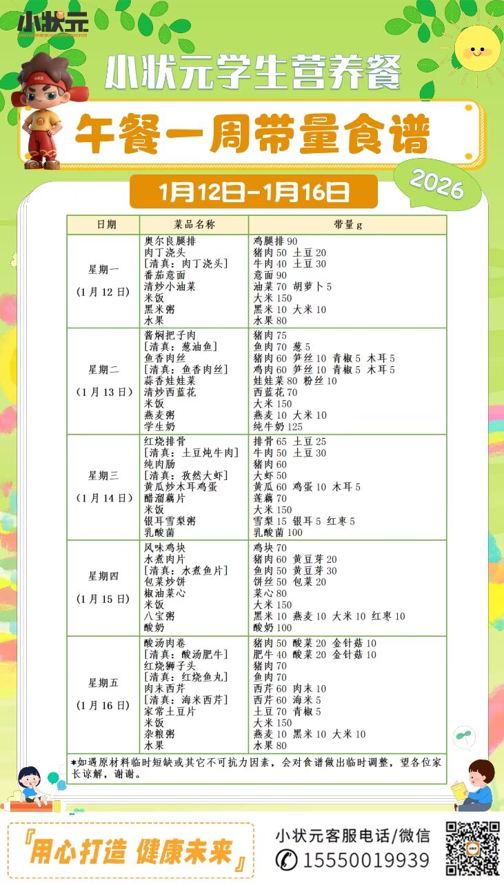 山东省济南第三十四中学2025-2026学年第一学期第二十周配餐公示