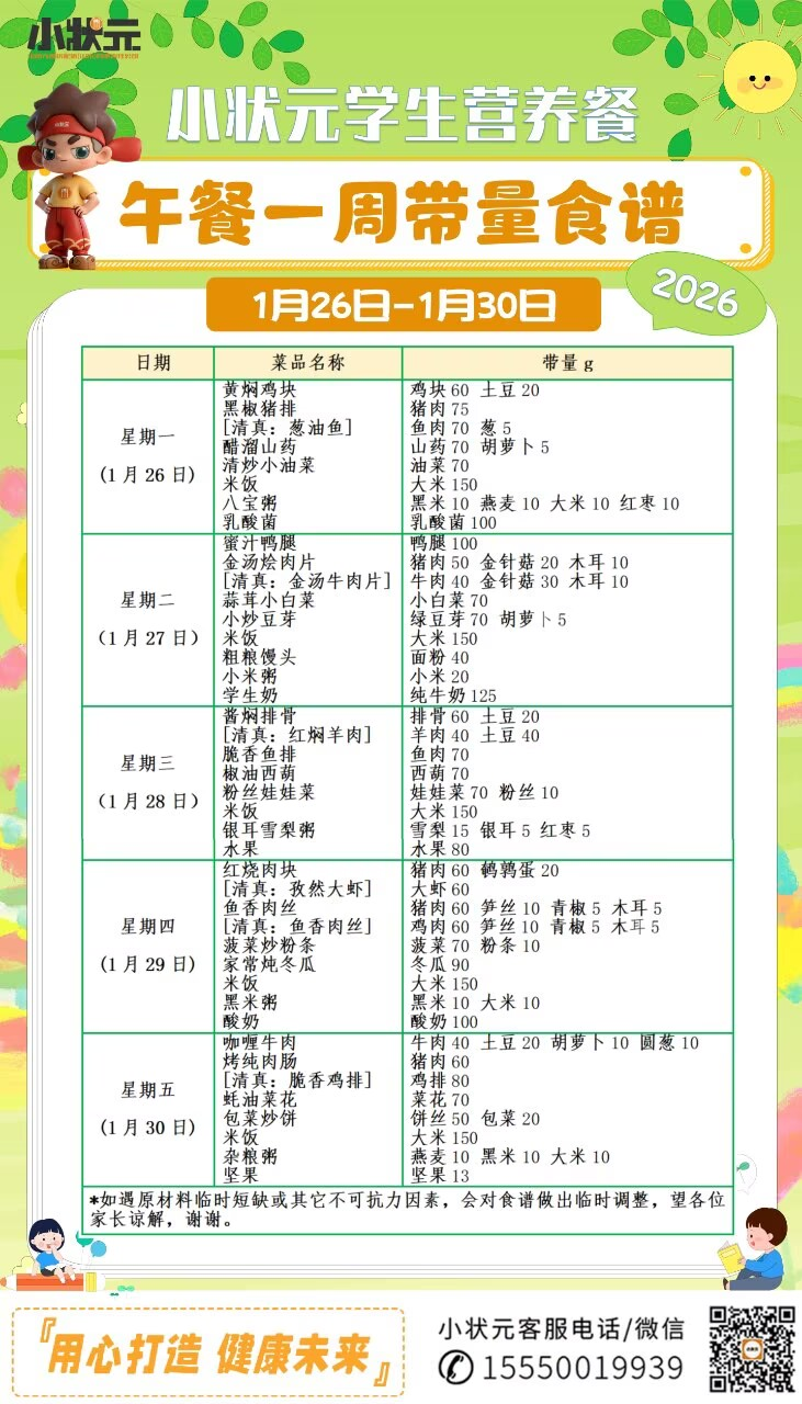 山东省济南第三十四中学2025-2026学年第一学期第二十二周配餐公示