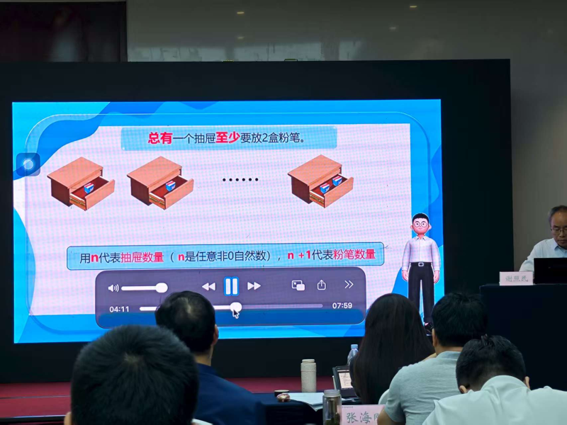 案例点评环节成为培训的“实践课堂”。谢校长对省市电教馆参评的课件、微课及融合案例进行深度剖析:课件“圆的面积”在交互性、技术融合、情境化设计上亮点突出,微课“抽屉原理”以“数字人对话”等形式增强互动性,技术融合自然且内容丰富。融合案例“曹冲称象”课程则凭借高互动性、多元实用的技术融合,为新教师提供了鲜活参考。